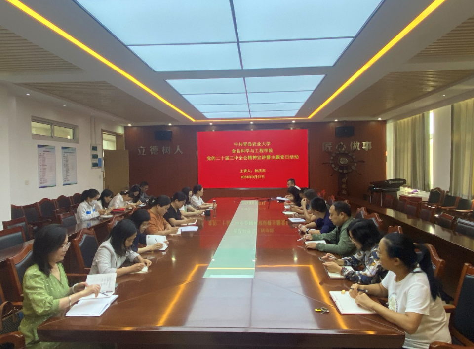 9月27日,永利yl23411集团官网教师党支部在食品楼310召开了党的二十届三中全会精神宣讲会,副校长孙庆杰教授为所在党支部党员及部分师生代表做专题宣讲。