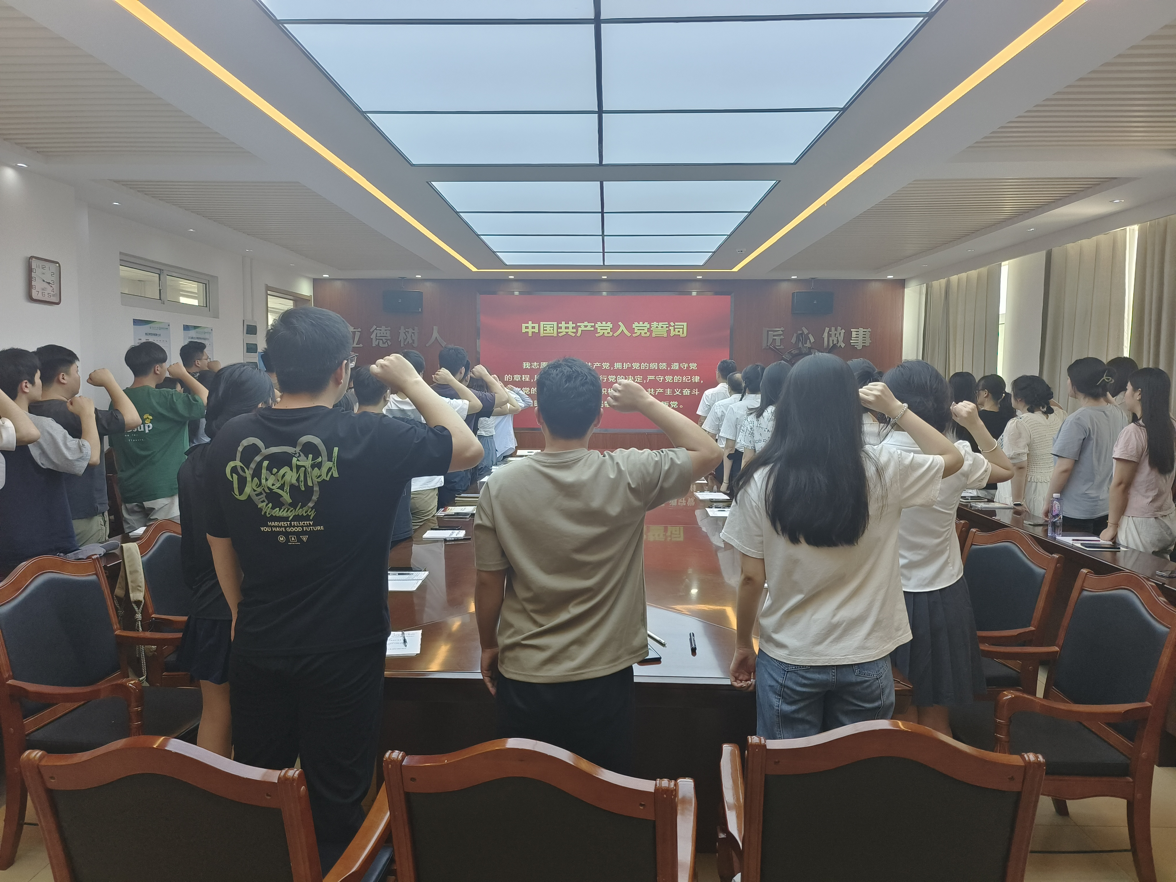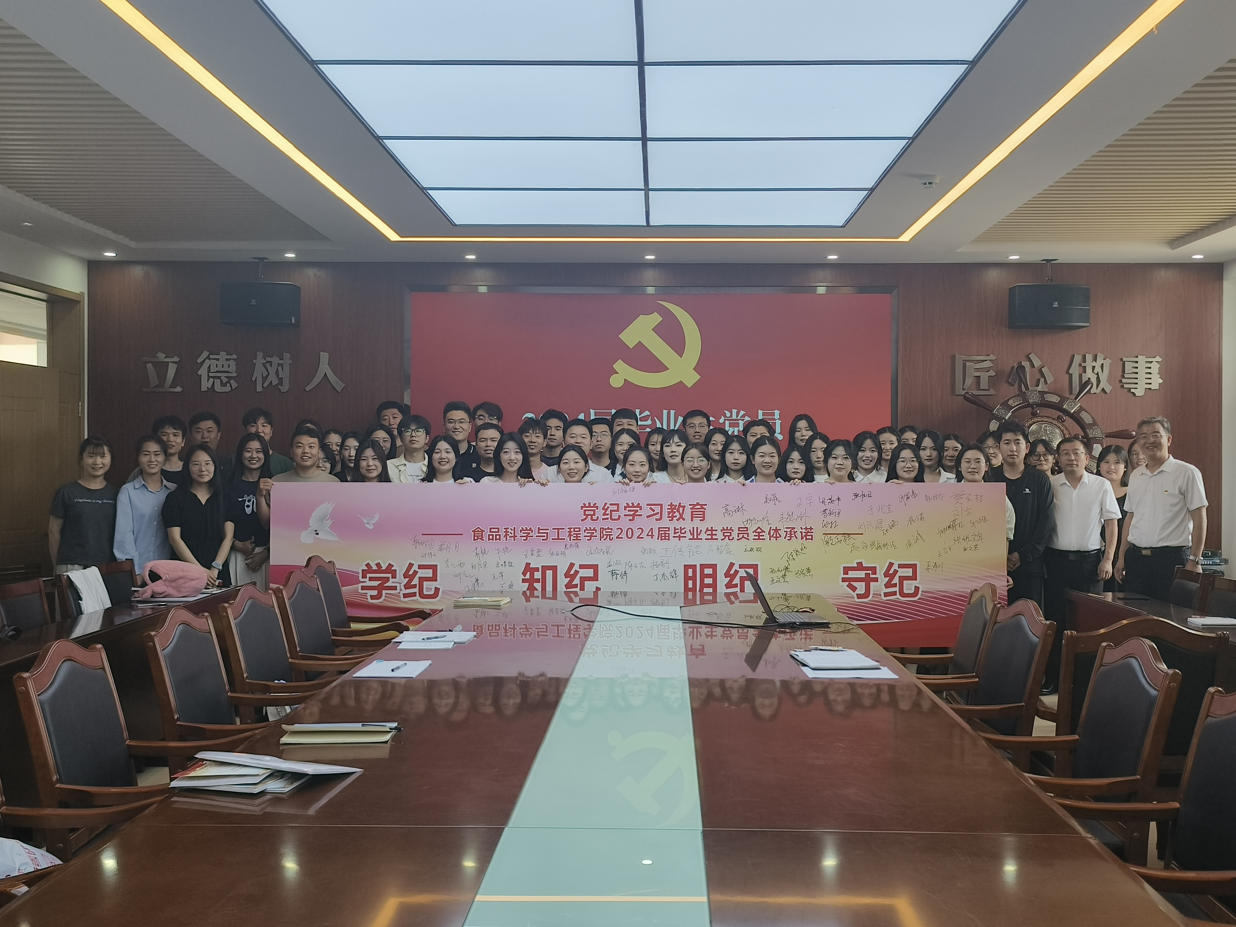 课后,车广杰带领全体党员重温了入党誓词,全体毕业生党员还共同进行了党纪学习教育集体承诺签名。