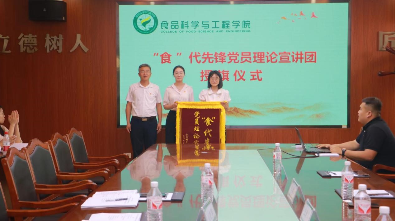 比赛结束后,举行了永利yl23411集团官网第二届“食代先锋理论宣讲团”成立仪式,院党委书记车广杰为新一届宣讲团授旗。