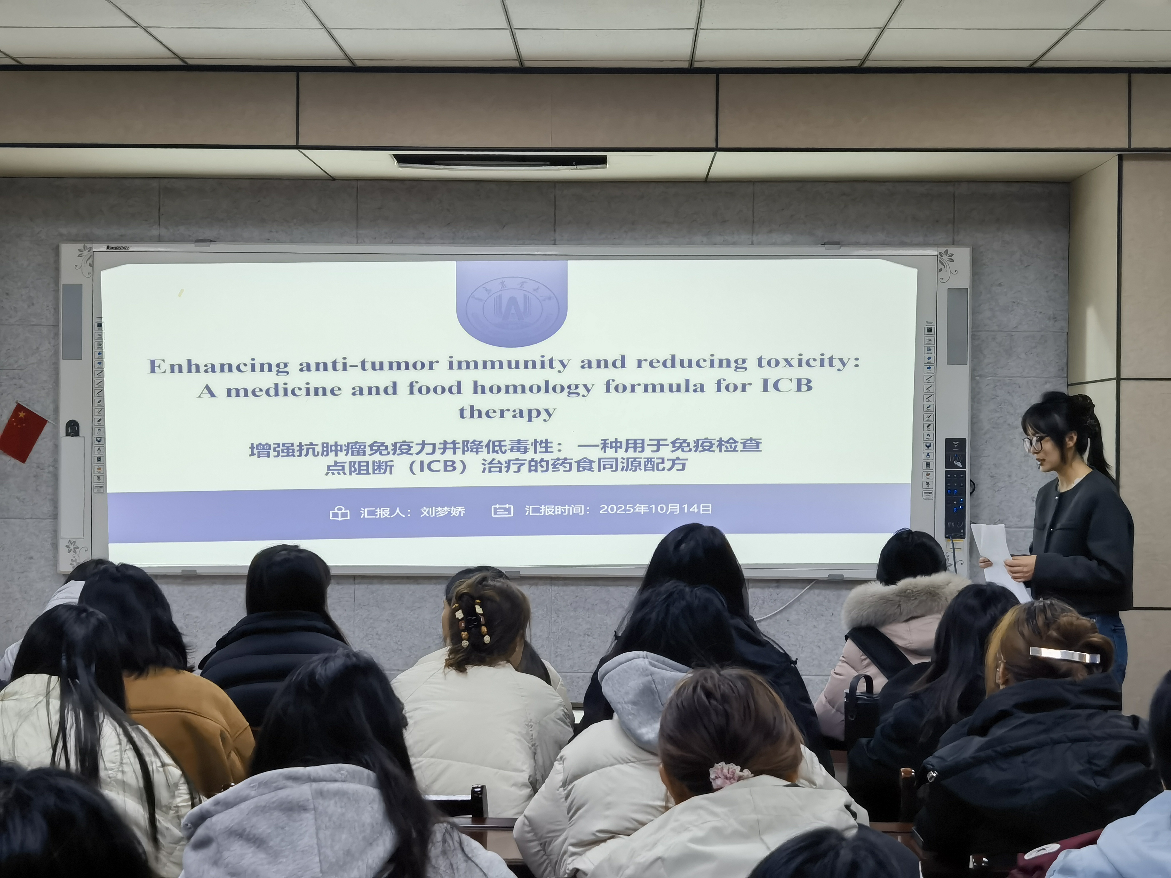 11月20日,永利yl23411集团官网在食品楼302举办第五十七期“食学研讲”活动。此次活动由食品硕2503班刘梦娇主讲,主题为“增强抗肿瘤免疫力并降低毒性:一种用于免疫检查点阻断(ICB)治疗的药食同源配方”。