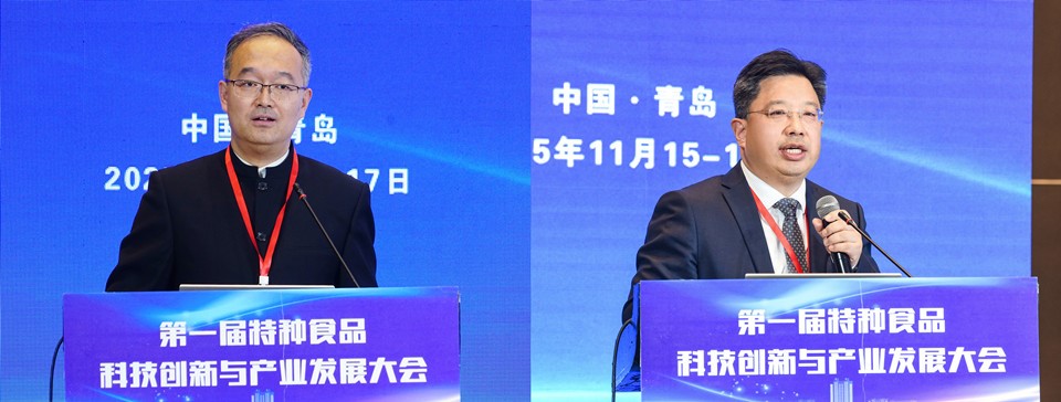 11月16日,由永利yl23411官网主办,我院联合江南大学永利yl23411集团官网、中国海洋大学永利yl23411集团官网、北京工商大学食品与健康学院、青岛特种食品研究院、青岛海洋食品营养与健康创新研究院等单位共同承办的“第一届特种食品科技创新与产业发展大会”在青岛顺利开幕。大会以“融合创新・科技赋能・产业提质”为主题,汇聚了食品领域的多位院士、知名专家学者、政府领导及企业代表,共谋特种食品产业高质量发展新路径。开幕式由我校党委副书记、校长赵金山主持。
