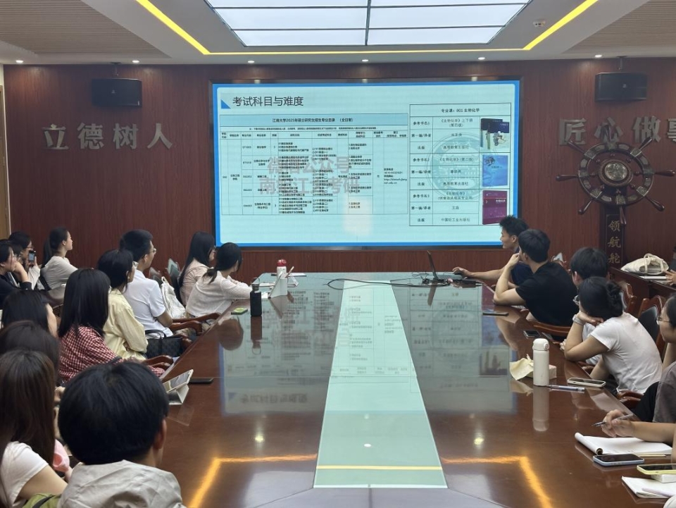 会上,4名同学结合自身情况,分别就目标院校的选择、考研复习技巧方法、备考时间规划三个方面进行了详细的讲解。其中,被中国海洋大学拟录取的刘志瑞同学重点分享了数学的学习方法,他讲到大量做题的同时要及时对错题进行归纳整理,要做到知识点上的通懂,要按照自己的进度,不要因为盲目攀比而引起自身焦虑;被南京农业大学拟录取的范文卓同学及被江南大学拟录取的纪丛勋同学是考研中共同努力的互助“搭子”,他们俩详细讲解了各科目在不同阶段下的复习方法与技巧,并推荐了复习书籍和网课资料。被天津科技大学拟录取的刘瑞雪同学鼓励大家积极参加学术竞赛活动,以考代练,以考促学,为专业课的复习打下坚实基础。