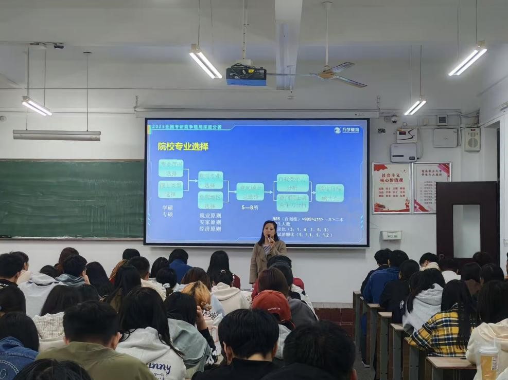 为助力学生精准把握考研方向、科学规划备考进程,10月15日、21日,学院分别在城阳、平度两个校区举办“‘研’途追梦”考研规划指导讲座,邀请智禾考研金牌讲师张文静为学生们有针对性地答疑解惑。