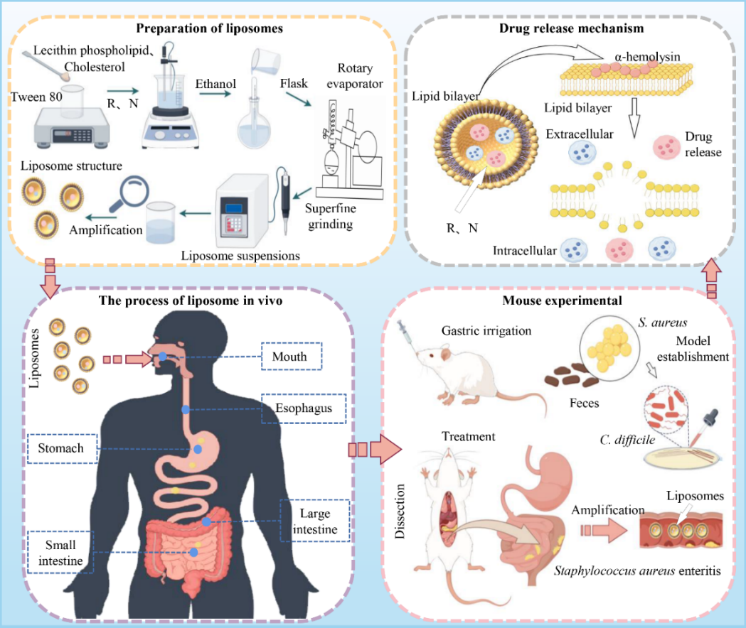 近日,永利yl23411集团官网鞠健教授团队在国际权威期刊《Materials Today Bio》(一区,TOP,IF=10.2)在线发表题为《Establishment and Application of Nano-liposomes System for Targeted Therapy of Methicillin-resistant Staphylococcus aureus Enteritis》的文章,创建了一种新型靶向治疗金黄色葡萄球菌肠炎的纳米运载体系。