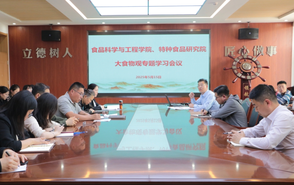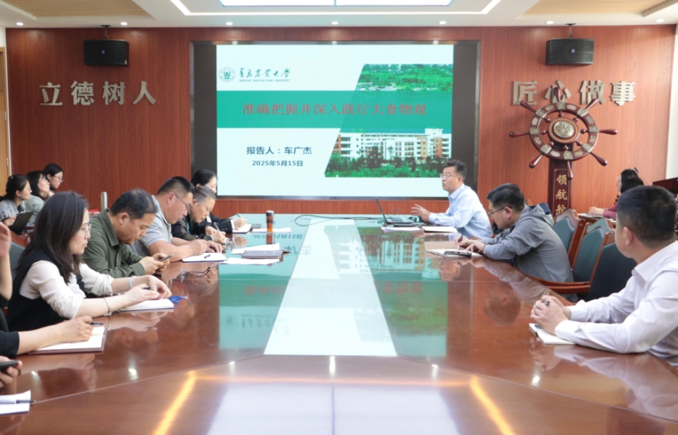 5月15日,永利yl23411集团官网召开大食物观专题学习会议,深入学习贯彻习近平总书记关于大食物观的重要论述,学院党委书记车广杰以“准确把握并深入践行大食物观”为题作辅导报告,全体教职工参加学习会议。