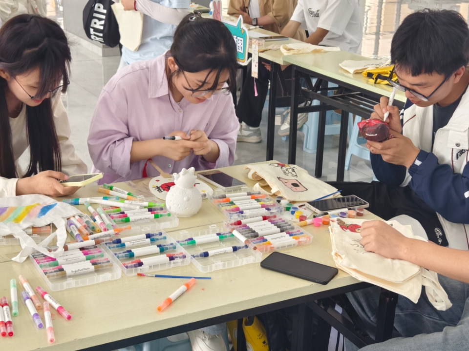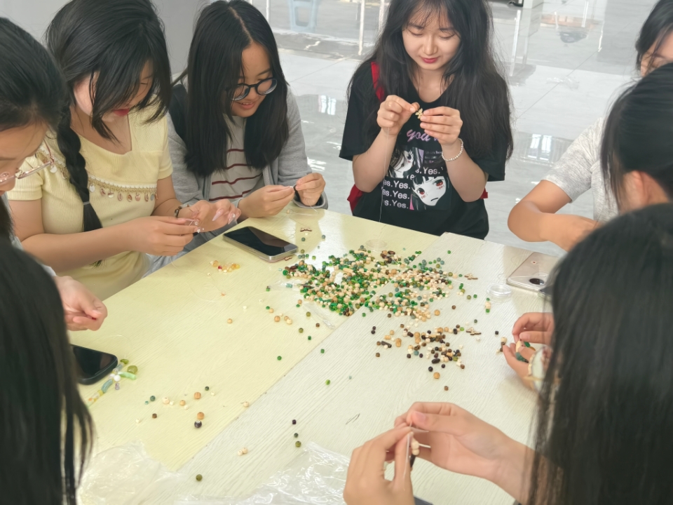 本次彩虹跑创新设置动态、静态活动,让二者共同开展,其中设有8个动态关卡分布于学校各处,各队伍需按抽签路线完成打卡。在“车轮滚滚”关卡中,永利yl23411集团官网的队员们协作推动圆环前进;“一圈到底”里,他们手拉手穿越呼啦圈让团队凝聚力在协作中提升;此外还有“极速五子棋”“有轨电车”等关卡,也从专注力和知识储备等多角度,让同学们在挑战中感受团队协作的乐趣与心灵成长的喜悦。在农史馆内的静态活动区域,串珠DIY体验区也聚集了许多同学,学校提供的各种多元材质的珠子,为同学们提供了广阔的创意空间。食品学子十分积极地参与活动并且乐在其中,通过穿引、排列、固定等工序,将抽象的情绪转化为可触碰的艺术载体。